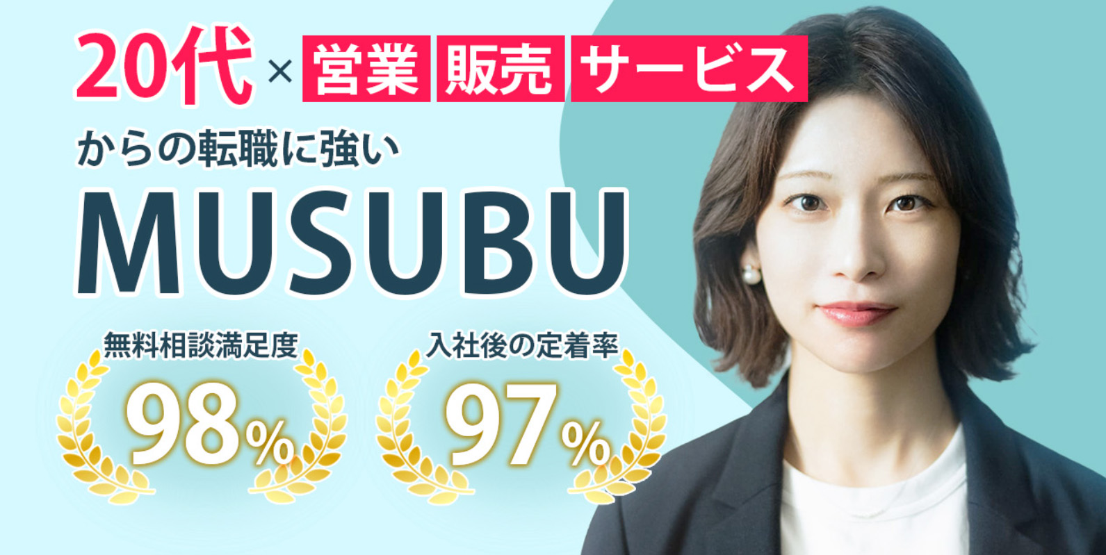 MUSUBUは、20代の転職支援に特化しており、特に営業・販売・サービス職からのキャリアチェンジに強みがあります。