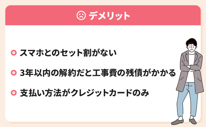 クレジットカードでの支払いに懸念がある人は、別の光回線を契約しましょう。ドコモ光やソフトバンク光なら、口座振替にも対応しています。