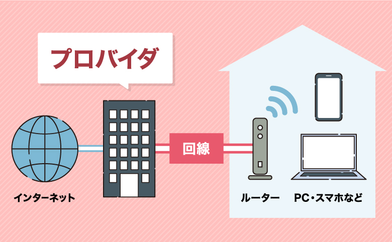 プロバイダとは、光回線とインターネットを接続する通信事業者です。光回線を導入しただけでは、インターネットは使えません。