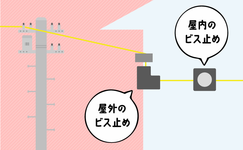 壁を傷つけずに固定が可能なので、工事担当者に屋内ではビスではなく両面テープを使ってもらえるよう提案してみましょう。