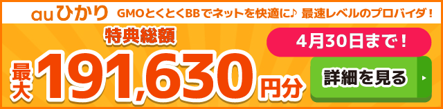 | 【auひかり✕GMOとくとくBB】 期間限定で1,000円増額 | |