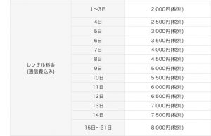 ポケット型WiFiのレンタル契約期間は、1日単位で、最大1ヶ月です。