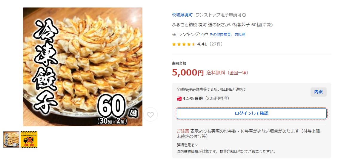 茨城県境町でおすすめの返礼品は、特製の冷凍餃子です。